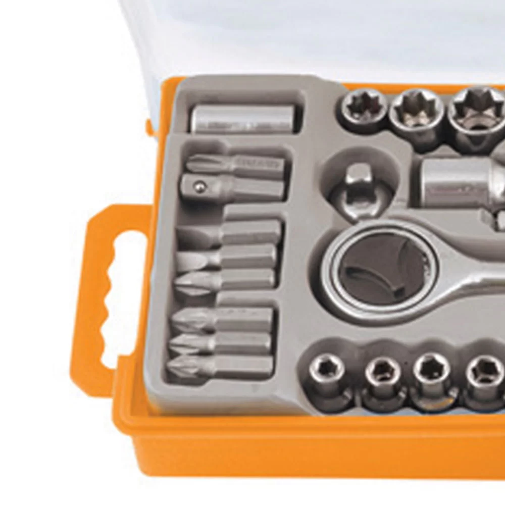 Jogo chave catraca reversível com soquetes 40 peças. Para instalações onde requer parafusos sextavados, bits para fendas e philips.