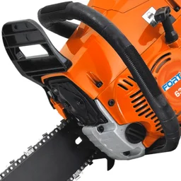 Motosserra à gasolina FG9122 com sabre de 20” é indicada para realizar cortes em árvores ou produtos de madeira. Ideal para uso profissional. Conta com motor 2T potente de 63 cilindradas permitindo maior eficácia e resistência